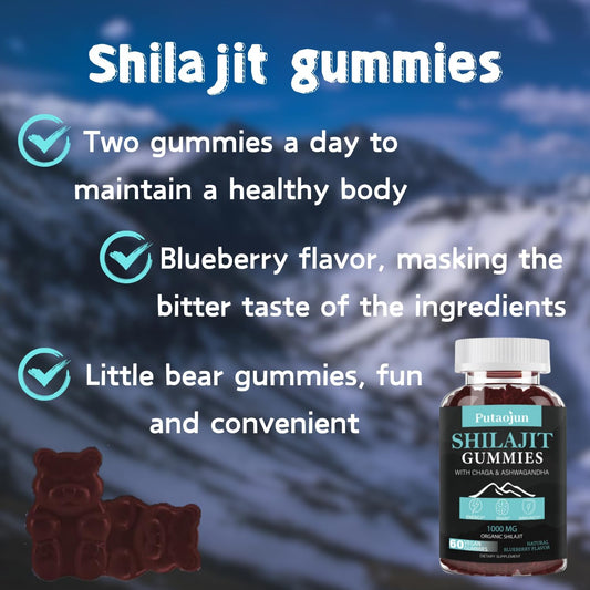 1000mg Shilajit Gummies with Ashwagandha, Chaga, Ginseng - Men, Women, Kids Supplement with Saw Palmetto & Black Seed Oil