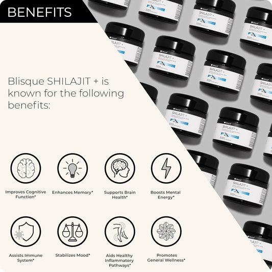 Organic Blisque Shilajit Resin Supplement for Cognitive Support with Bacopa & Gotu Kola - 60g