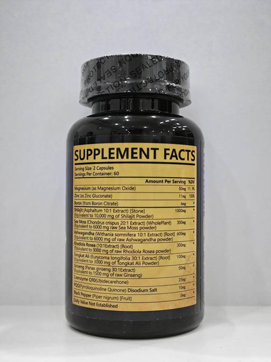 Organic UPTONO Shilajit Himalayan Capsules with Ashwagandha & Ginseng - 119 High-Potency Capsules for Men and Women
