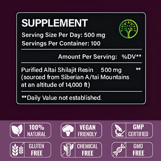 120 Tablets of Pure Altai Siberian Green Shilajit Mountain Balsam with 100% Fulvic Acid and Trace Minerals