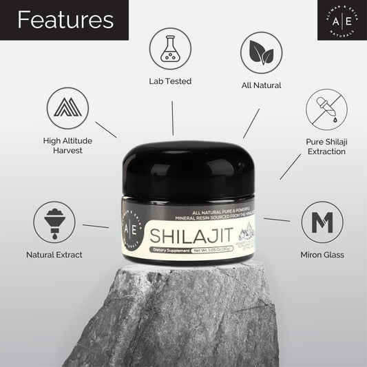 Organic Altman & Erika A&E Naturals Shilajit Resin - Himalayan Premium Grade A Supplement with 85+ Trace Minerals and Fulvic Acid - 83 Servings with Stainless Steel Spoon - for Men and Women