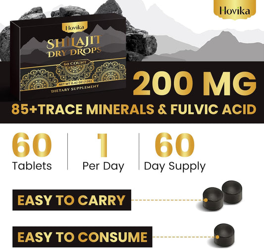 Organic Hovika Himalayan Shilajit Resin Tablets - 100% Pure with 85+ Trace Minerals & Fulvic Acid for Metabolism, Brain Boost, Energy & Immune Support