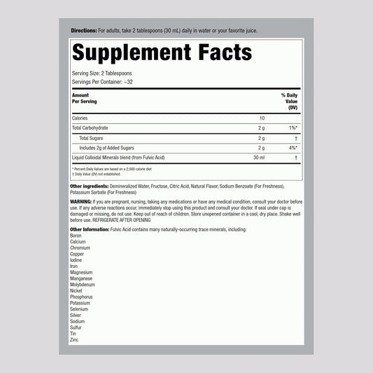 Liquid Advantage FULVIC MINERALS 33 oz Dietary Supplement - Pure Source of 70+ Trace Minerals for Health