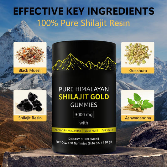Pure Himalayan Shilajit Gummies Gold Grade with 85+ Trace Minerals, Ashwagandha, Gokshura - Energy Boost and Immune Support for Men and Women - 60 Gummies