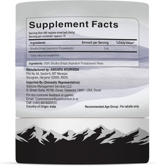Pure Nutrition Pure Himalayan Shilajit Resin: Natural Energy Supplement with 85+ Minerals for Men & Women | 75 Servings - 30g Pack