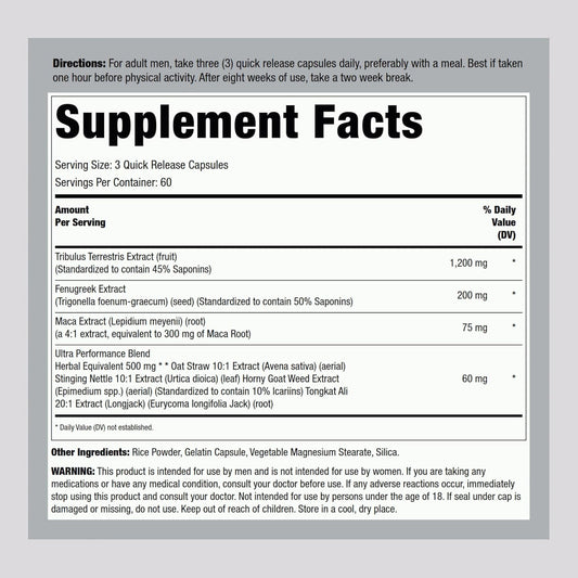 Tribulus Terrestris Supplement for Men | 120 Capsules | Blend with Fenugreek & Maca Extract | Non GMO & Gluten Free
