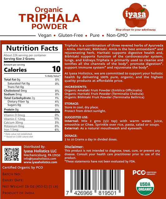 Organic Triphala Powder 16 oz - Ayurvedic Superfood for Natural Body Detox and Bowel Cleansing