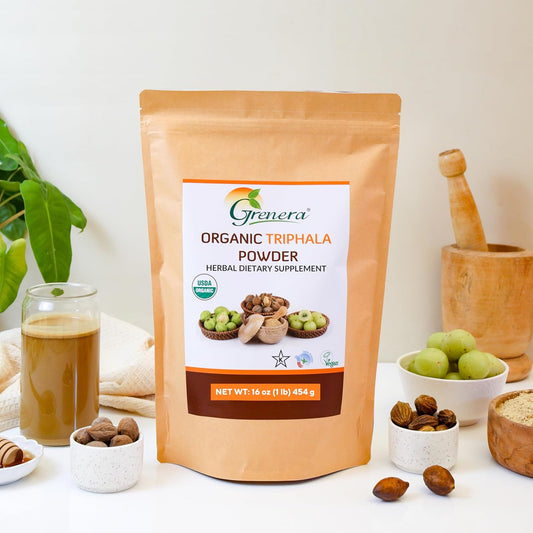 USDA Organic Grenera Triphala Powder 1 lb - Amalaki, Bibhitaki, Haritaki - Vegan & Kosher Certified - 16 Ounce (454g)