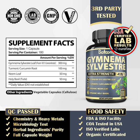 180 Satoomi Pure Gymnema Sylvestre Capsules Extract with Neem Leaf, Holy Basil & Turmeric - 6 Month SupplyVendor:SatoomiRegular price $124.53 AUDRegular priceUnit price / per-
