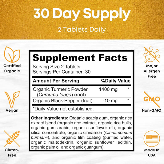 OrganicBolt Turmeric Curcumin Supplement with Black Pepper 1400mg Strengthens Joints | USDA Organic, Gluten-Free, Non-GMO | 60 Tablets, 30 ServingsVendor:OrganicBoltRegular price $119.69 AUDRegular priceUnit price / per-
