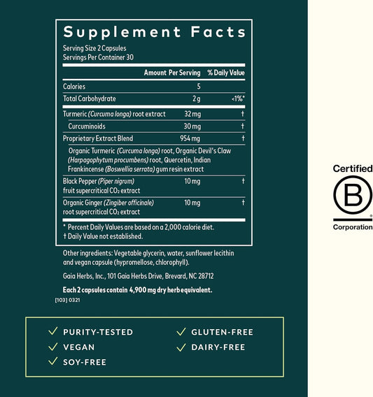 Turmeric Supreme Joint Health Supplement with Quercetin, Boswellia, and Ginger - 60 Liquid CapsulesVendor:Gaia HerbsRegular price $143.66 AUDRegular priceUnit price / per-