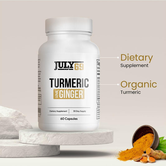 60 Capsules of Turmeric and Ginger Dietary Supplement with Bio Perine and 95% Curcuminoids - Herbal Wellness Product for Natural Support