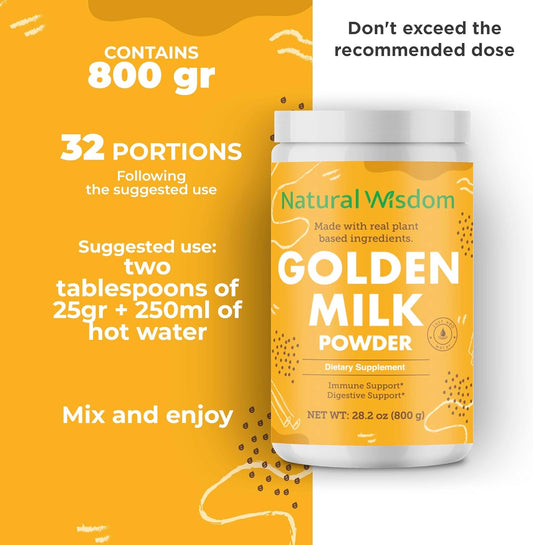 Golden Milk Powder with Turmeric, Ginger, Cinnamon, Cardamom, and Coconut Milk for Good Digestion - 100% Natural and Gluten Free - 28.2 oz