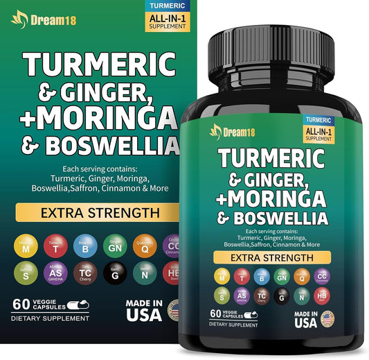 Turmeric Curcumin Joint Support Supplement with Ginger, Moringa, Boswellia, Saffron, Ceylon Cinnamon, Quercetin, and Tart Cherry - 60 Capsules