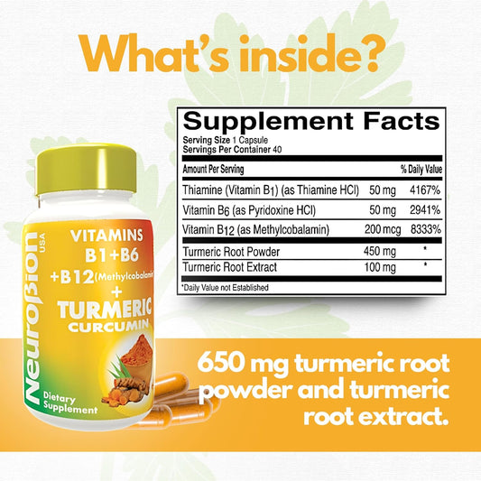 Neurobion Turmeric Curcumin 650mg Capsules with B12 - High Absorption Antioxidant Support Herbal Supplement - Ultra Potent Multivitamin Complex