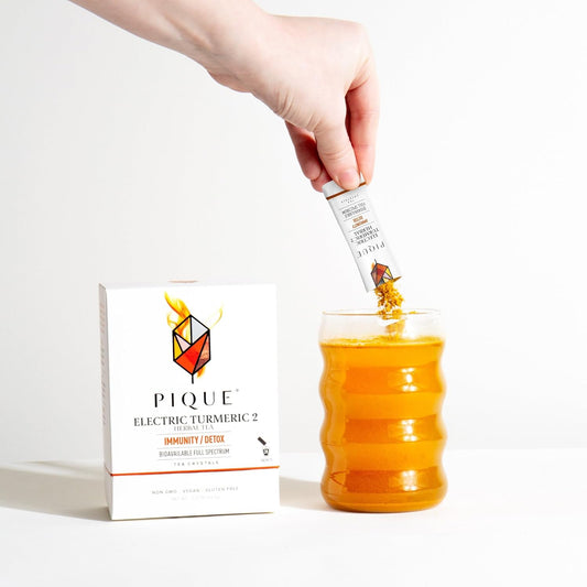 PIQUE Electric Turmeric 2 - Immune Support, Inflammation Relief, Detox, Skin Health - 28ct Single Serve Sticks