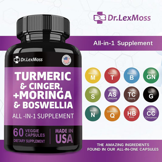 Joint Support Supplement with Turmeric, Ginger, Moringa, Boswellia, Saffron, Ceylon Cinnamon, Quercetin, and Tart Cherry - 60 Capsules