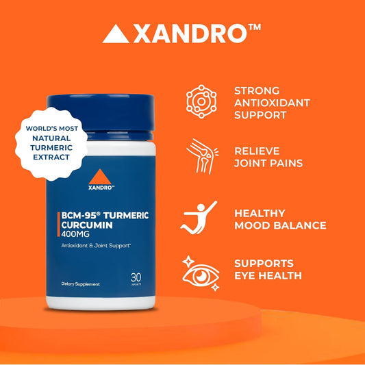 XANDRO BCM-95® Turmeric Curcumin 400 mg Capsules for Antioxidant & Joint Support, 30 Vegan Capsules