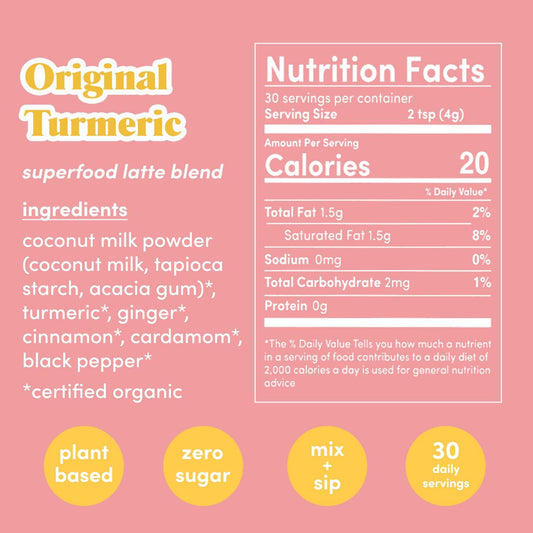 Original Turmeric Superfood Latte Blend with Coconut and Ginger - Vegan Keto Sugar-Free - Supports Skin Glow Gut Health Immunity - 30 Servings