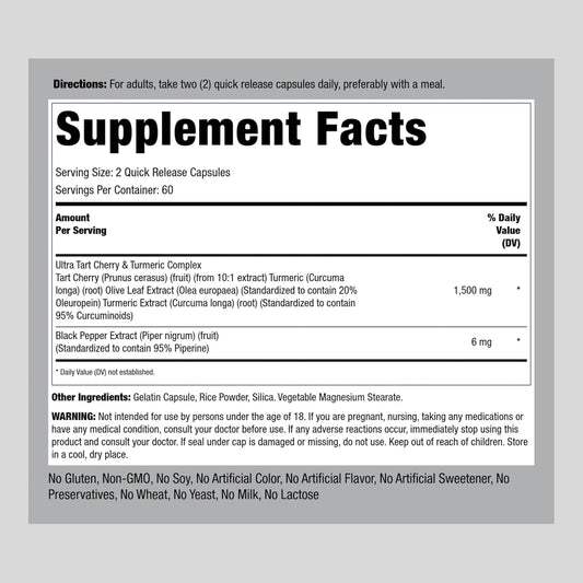 Turmeric and Tart Cherry Capsules with Black Pepper Extract - 120 Count | Vegetarian, Non-GMO, Gluten Free Supplement