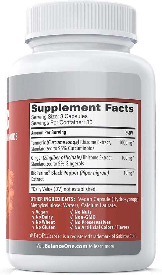 Turmeric Curcumin Supplement with 1000mg Extract, 95% Curcuminoids, Ginger, and BioPerine - Joint & Immune Support - 1 Month Supply