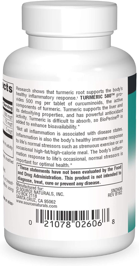 500 mg Turmeric Tablets for Healthy Inflammation Response - 60 Tablets by Source Naturals