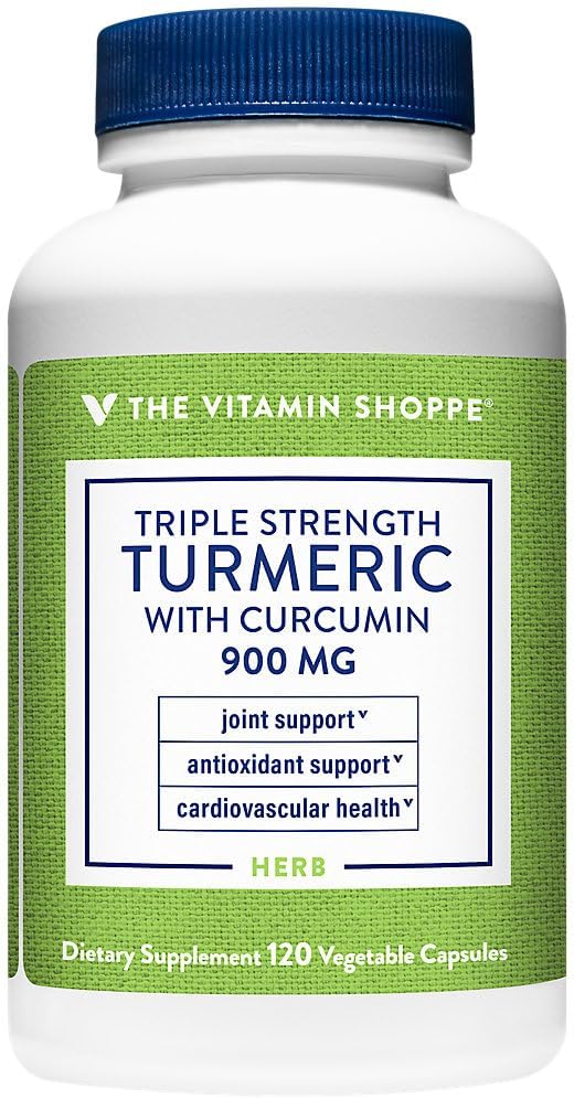 Triple Strength Turmeric with Curcumin 900mg Capsules - Joint Mobility Support, Antioxidant Benefits, Includes 5mg Bioperine - 120 Vegetarian Capsules