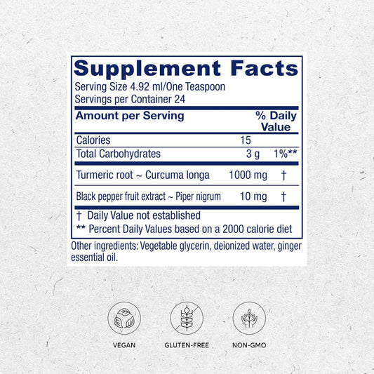 Vitanica Turmeric Tonic 1000mg Liquid Supplement with Black Pepper & Ginger - Antioxidant Vegan Gluten Free - 4oz
