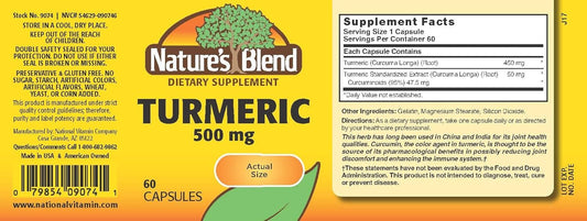 60 Capsules of Nature's Blend Turmeric 500 mg - Natural Anti-Inflammatory and Antioxidant Supplement