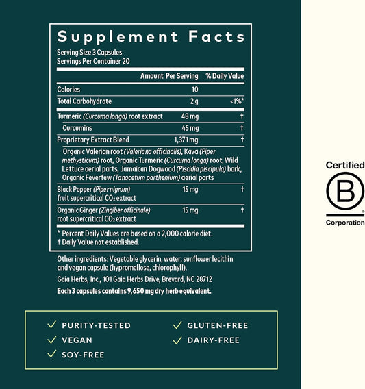 Gaia Herbs Turmeric Supreme Discomfort P.M. - Nighttime Comfort for Restful Sleep - 60 Liquid Phyto-Capsules