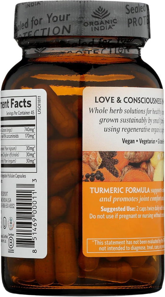 Organic India Turmeric Curcumin Supplement - Supports Joint Mobility, Immune System, Inflammatory Response - 90 Capsules