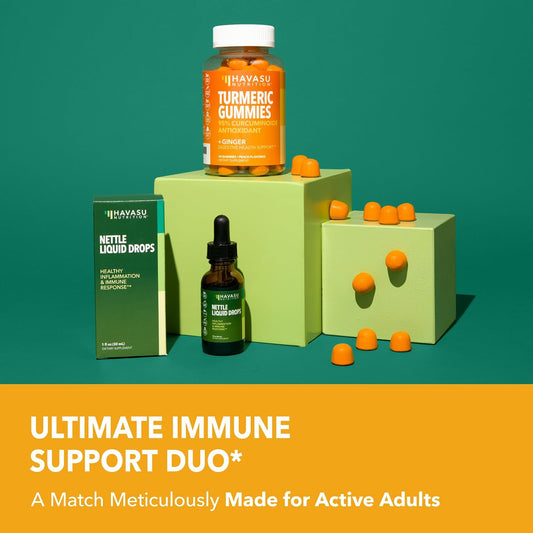Organic Turmeric, Ginger, and Nettle Root Gummies & Drops for Metabolism, Prostate, Joint, & Immune Support - Non-GMO & Gluten-Free - 60 Gummies, 1 Fl Oz