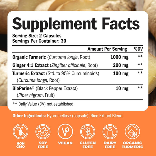 Organic Turmeric Curcumin with Black Pepper, Ginger, Elderberry & Essential Vitamins for Joint, Immune, Heart & Digestive Support