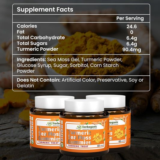 Organic Turmeric Sea Moss Gummies - Herbal Supplement for Skin & Energy Support with Sea Moss, Boost Immunity - 60 Gummies