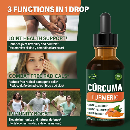 Verdeherb Turmeric Liquid Drops with Black Pepper Boswellia - Joint Health & Immunity Support Supplement - 2oz