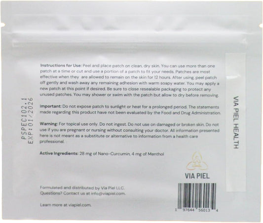 Large ACYEAH Via Piel Health Turmeric Extract Patch - 28mg Nano Curcumin, 4mg Menthol - Joint & Immune Support, Inflammation Relief - 10-Day Supply