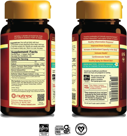 Nutrex Hawaii TurmericAstin Capsules - Turmeric, Astaxanthin, BioPerine - 30 Count