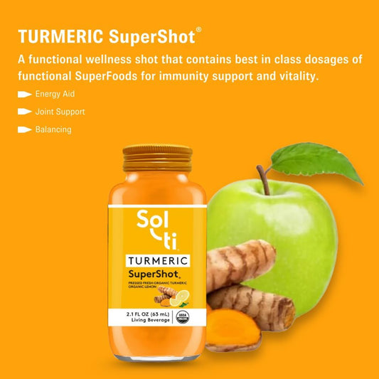 Sol-ti Organic Turmeric SuperShot with Black Pepper for Joint Support, 12 Pack (2.1 Fl oz) - Enhances Curcumin Absorption