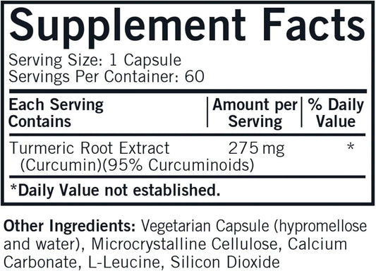 Turmeric Root Extract Capsules 275mg - 60 Veg Caps - Antioxidant & Immune Support - Kirkman
