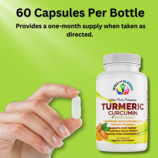 Organic Turmeric Curcumin Supplement with BioPerine - 60 Capsules - Vegan Friendly - Enhanced Absorption for Daily Joint and Heart Support