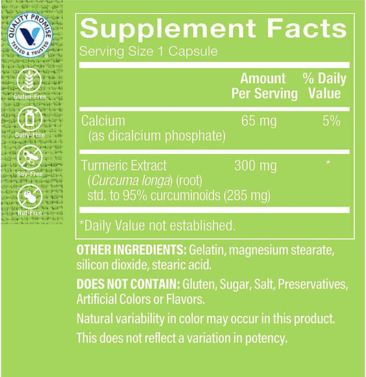 300mg Turmeric Extract Capsules with 95% Curcumin for Cellular Health & Antioxidant Benefits - 300 Count