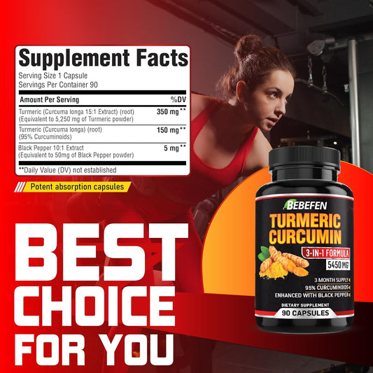 Turmeric Curcumin Capsules with Black Pepper Extract - 5450mg Formula for Joint, Inflammatory & Immune Support - 90 Capsules - 3 Month Supply