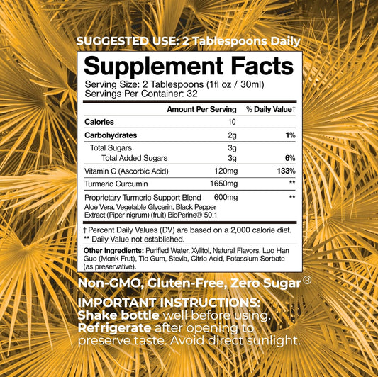 32oz Tropical Oasis Liquid Turmeric Curcumin with Bioperine - High Absorption Rate - 1650mg Turmeric Supplement