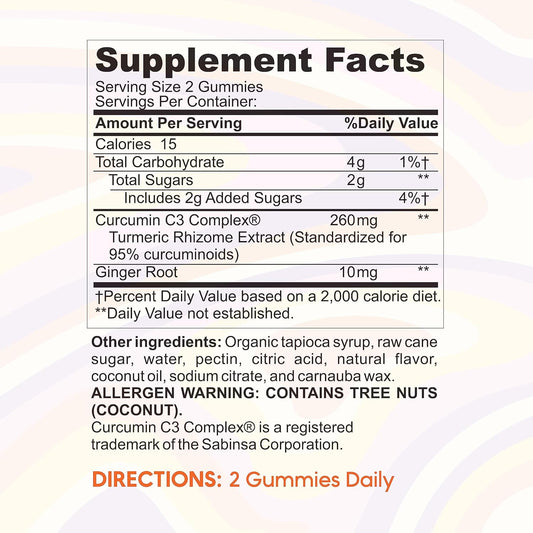 Turmeric Curcumin Gummies with Black Pepper & Ginger - 500mg, Vitamin C, Low Sugar Orange Gummies for Adults - 120 Count