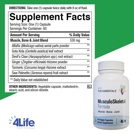 Musculoskeletal Formula with Devil’s Claw, Turmeric, Gotu Kola, Alfalfa for Bone, Joint, Muscle & Tissue Health - 60 Capsules