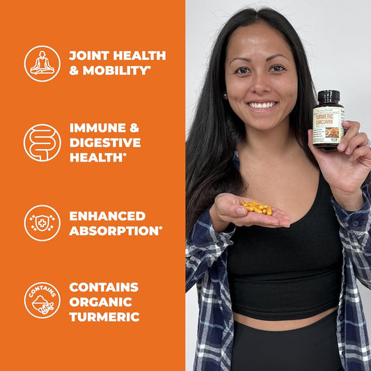 Organic Turmeric Curcumin Supplement with Bioperine for Joint Support - 1200mg Tumeric Root, 95% Curcuminoids, Non-GMO, Vegan - 2 Pack