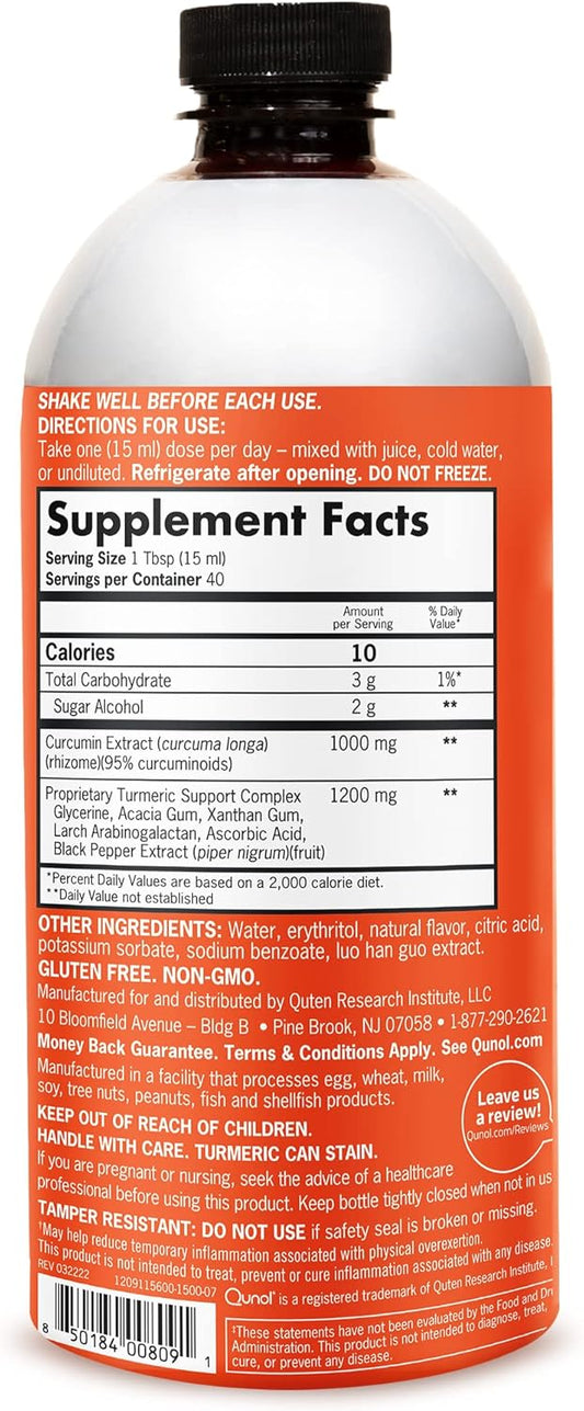 Qunol Liquid Turmeric Curcumin with Black Pepper, 1000mg Extra Strength Supplement for Joint Health - 40 Servings, 20.3 fl oz (2 Pack)