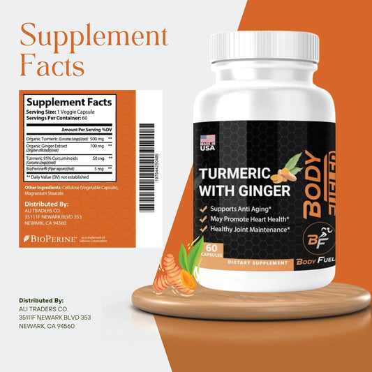 60 Capsules of BODY FUELER Turmeric, Black Pepper & Ginger - Herbal Supplements for Joint, Immune Support & Healthy Skin - USA Made