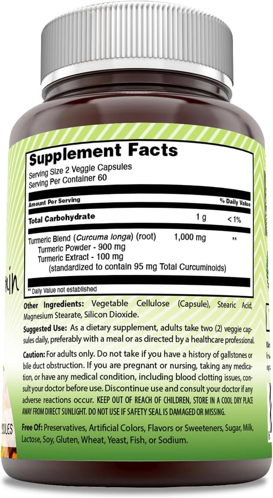 High Potency Turmeric Curcumin Supplement | 1000 Mg Per Serving | 120 Veggie Capsules | Non-GMO & Gluten Free | Made in USA