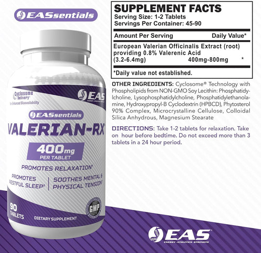 Valerian-RX 400mg Tablets for Relaxation & Restful Sleep | Gluten Free, Non GMO | Enhanced Absorption with Cyclosome Delivery | 90 Count